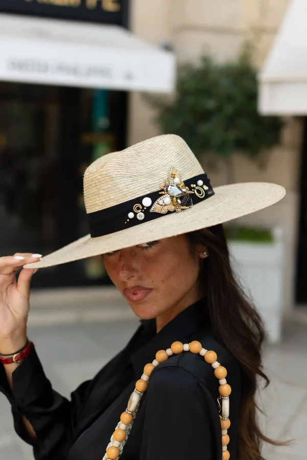 Fedora Grand Bord « Star » Noir Gold Violine