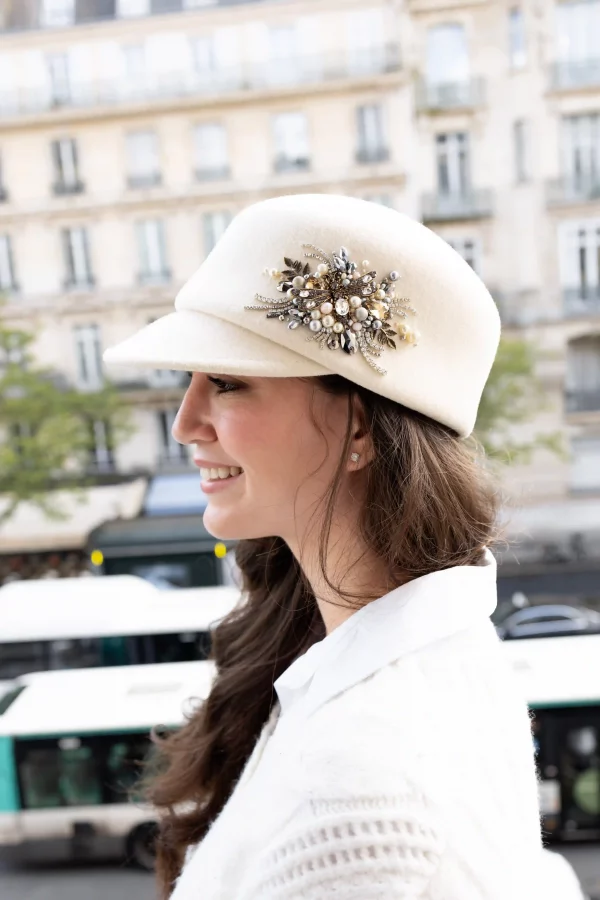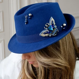 Fedora « Le Lys Royal » Grand Bord Gris Turquoise