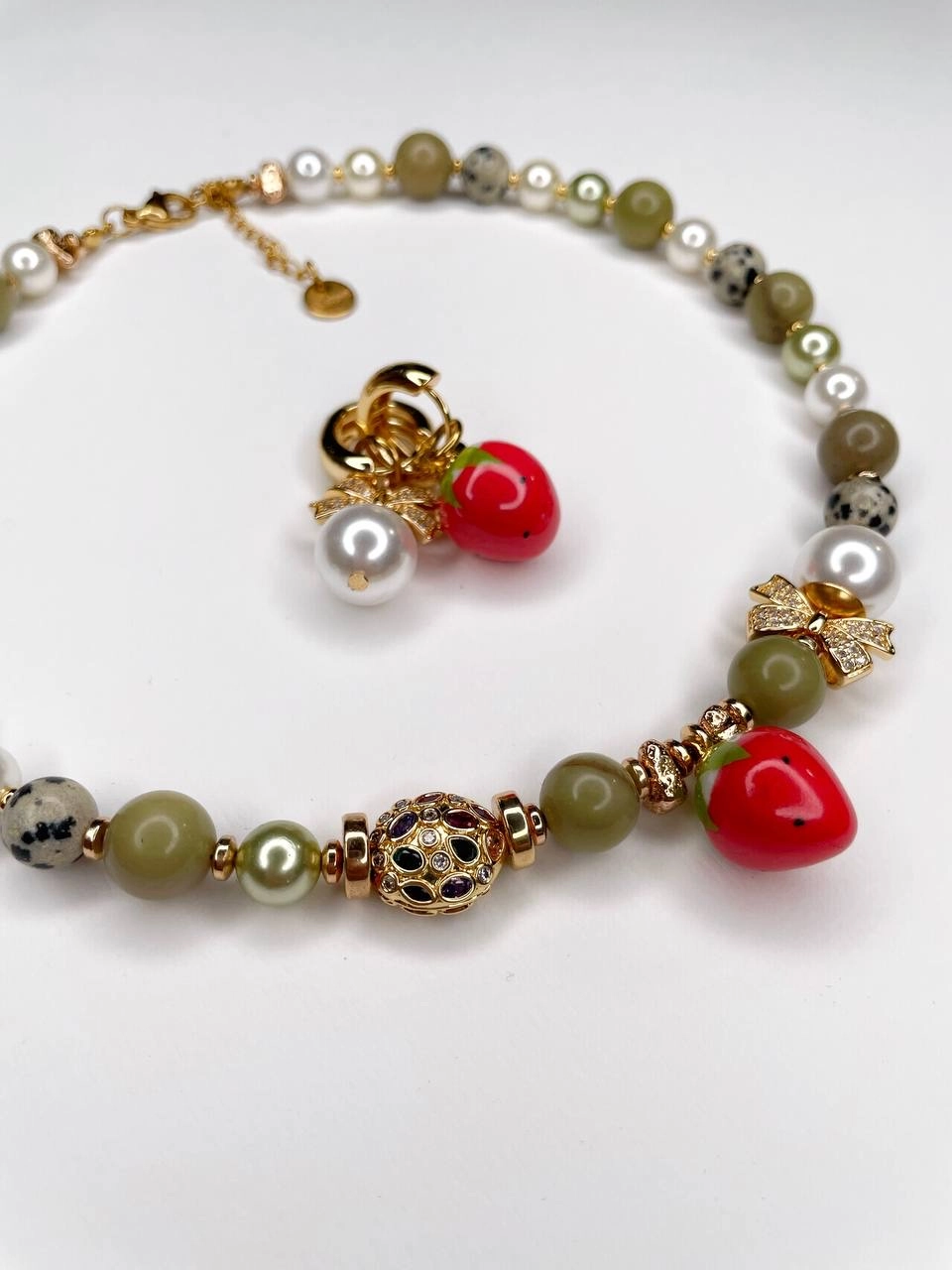 Les boucles d’oreilles, en parfaite harmonie, reprennent les mêmes pierres pour une élégance boho-chic et intemporelle. Leurs nuances chaudes et leurs motifs organiques en font des accessoires pleins de caractère, idéaux pour sublimer votre look avec une pointe d’exotisme.
