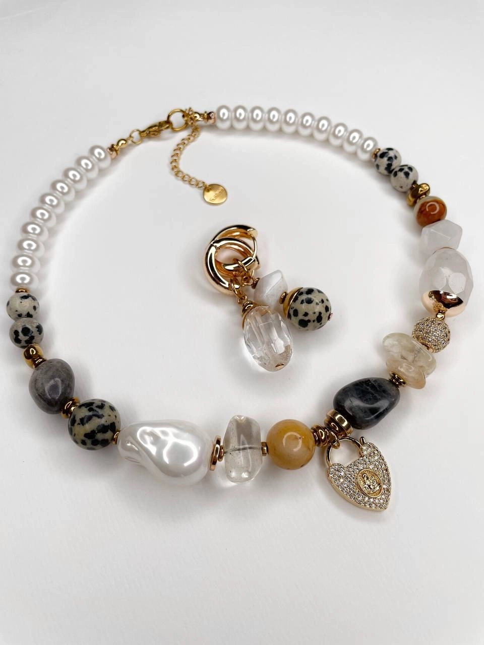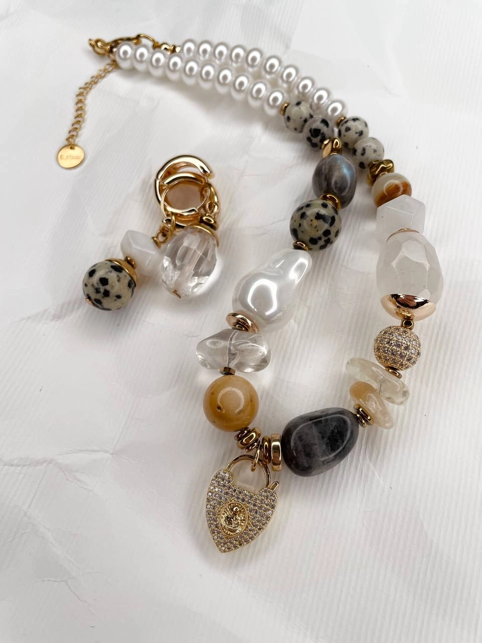Découvrez “Le Lock”, un combo ultra-tendance qui allie élégance urbaine et attitude moderne. Ce duo composé d’un collier et de boucles d’oreilles au design inspirée des cadenas — symbole d’amour, de force ou de secrets bien gardés — apporte une touche édgy et sophistiquée à votre style.