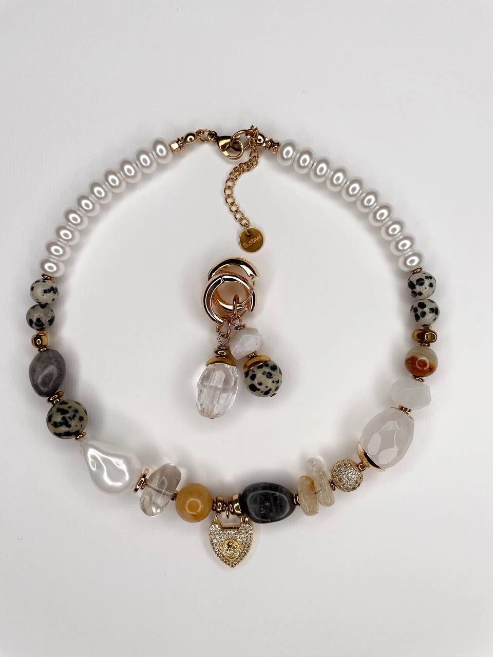 Le collier, avec son pendentif cadenas épuré et graphique, devient une pièce statement qui attire tous les regards. Son design minimaliste mais percutant en fait un accessoire polyvalent, aussi bien pour une tenue casual que pour un look plus habillé.