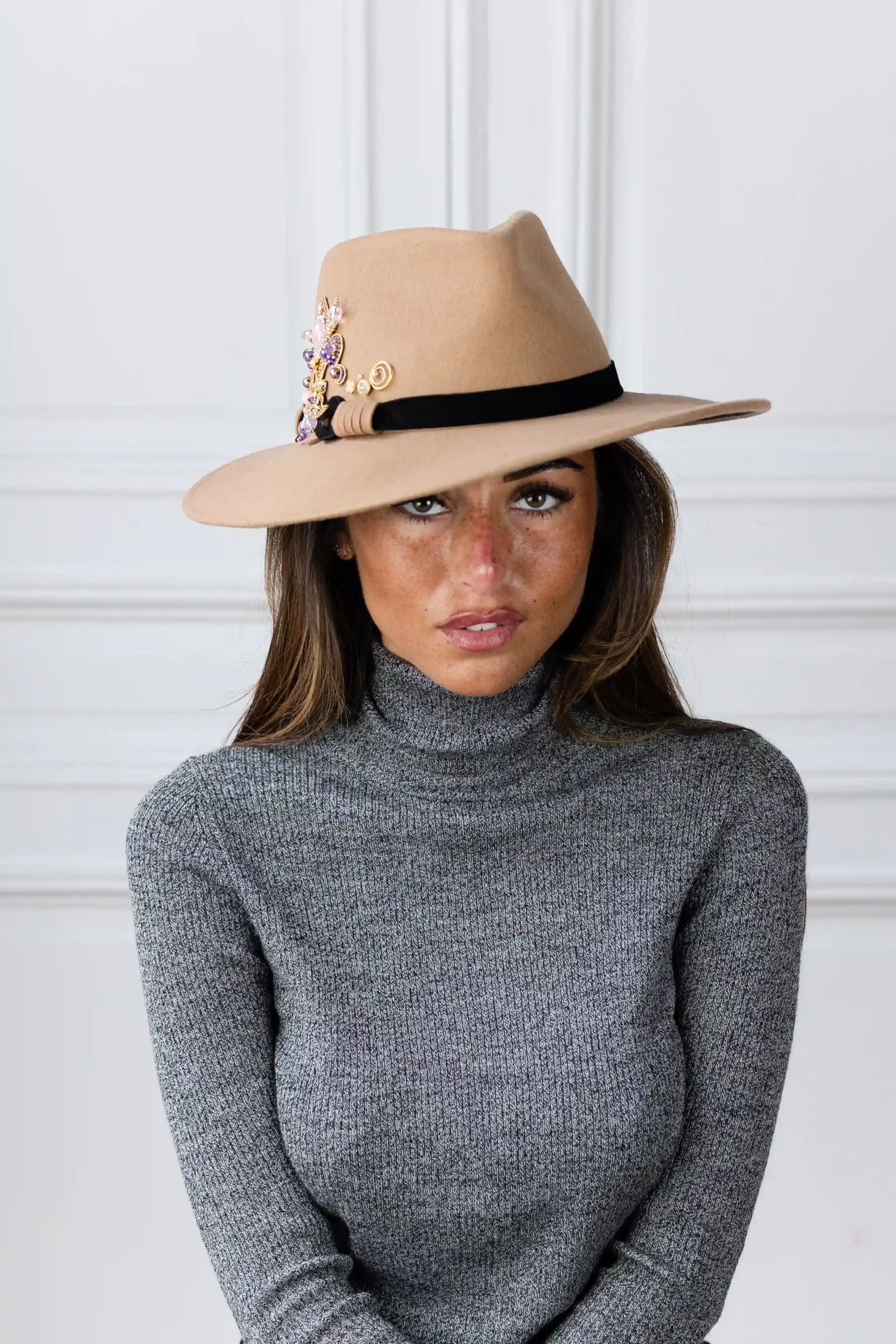 Fedora « Le Lys Royal » Grand Bord Gris Violine