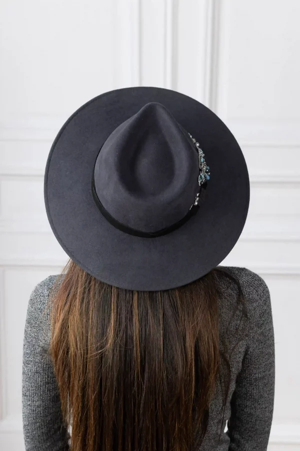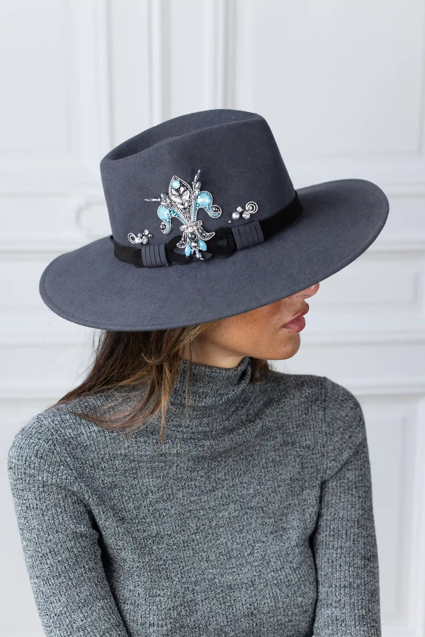 Fedora « Le Lys Royal » Grand Bord Gris Turquoise