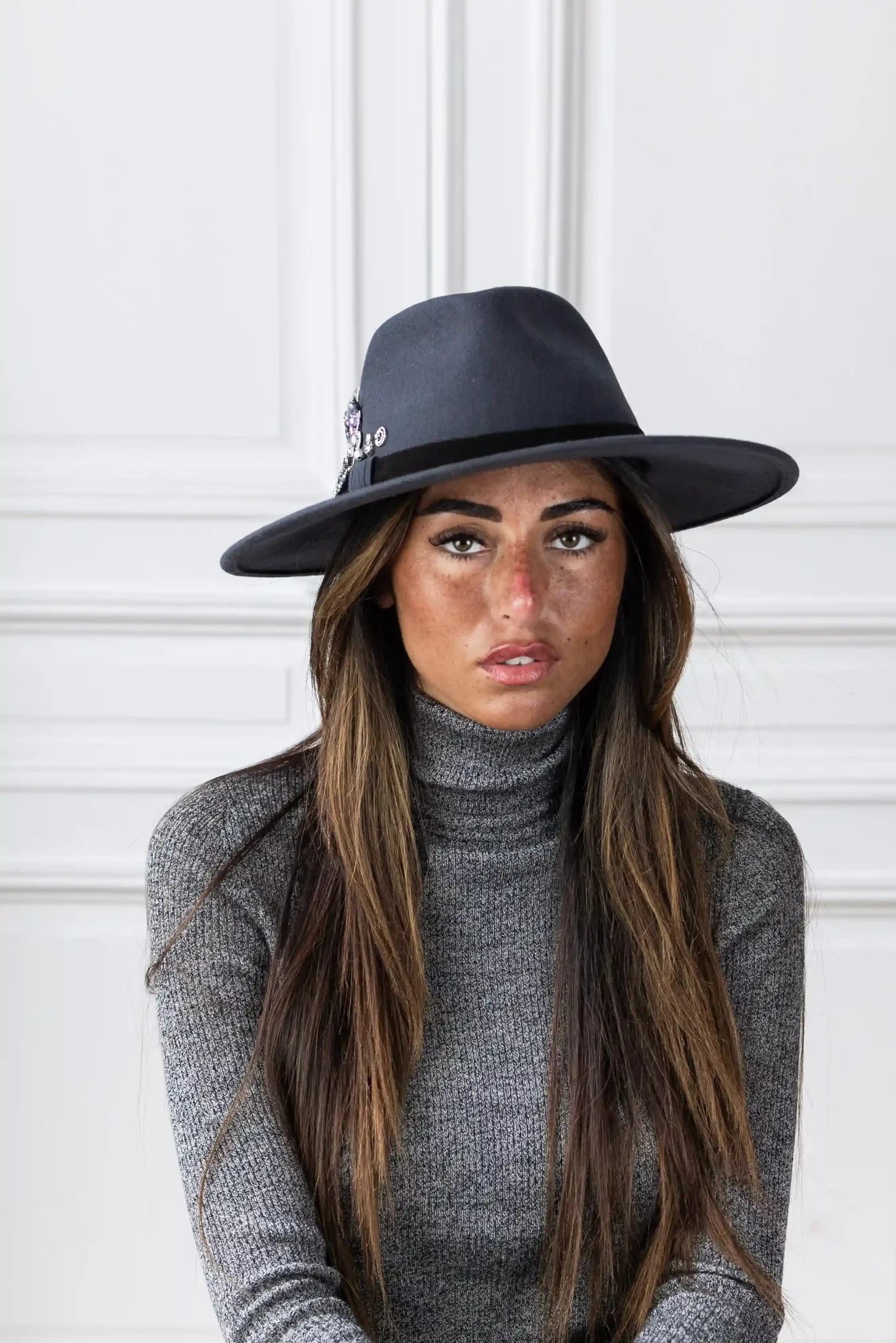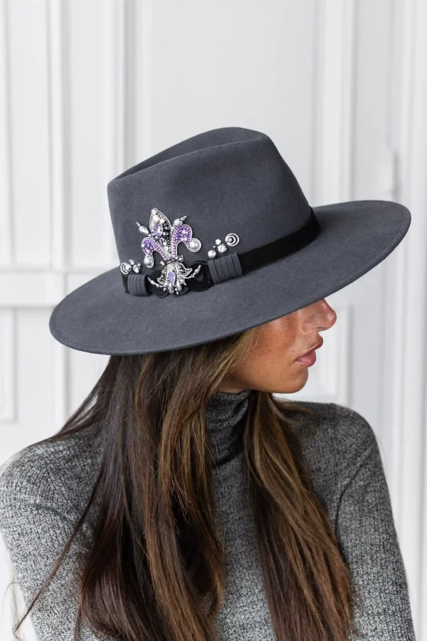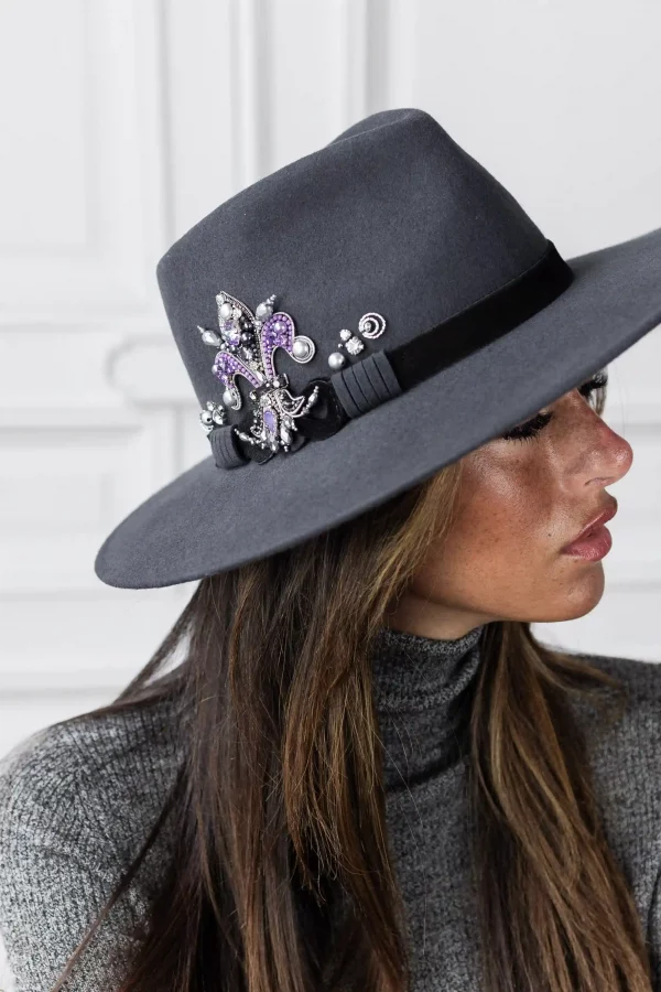 Fedora « Le Lys Royal » Grand Bord Gris Violine