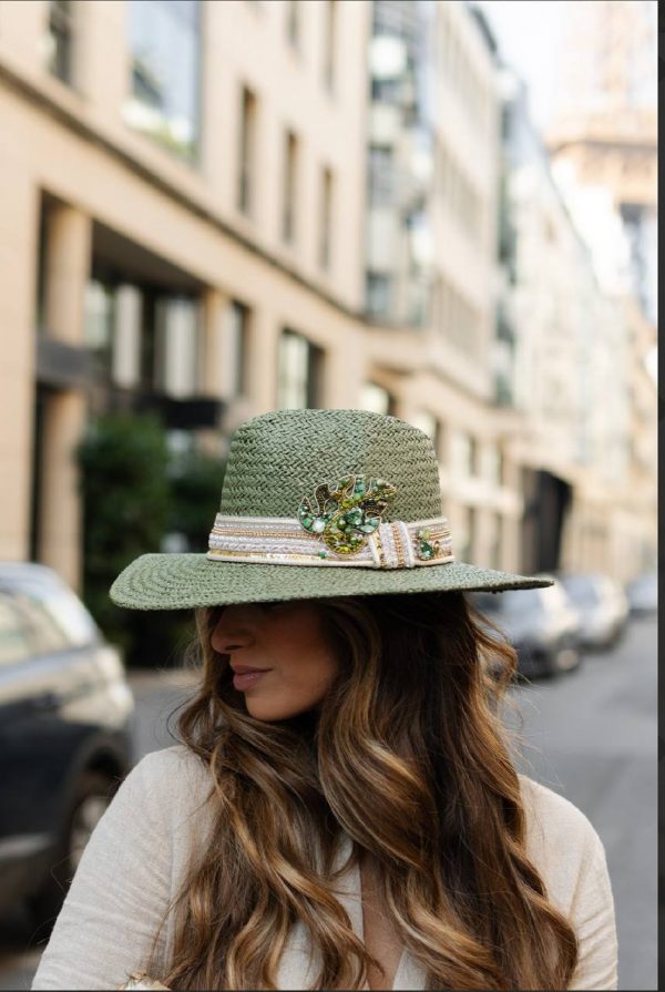 Fedora « Le Lys Royal » Grand Bord Gris Turquoise
