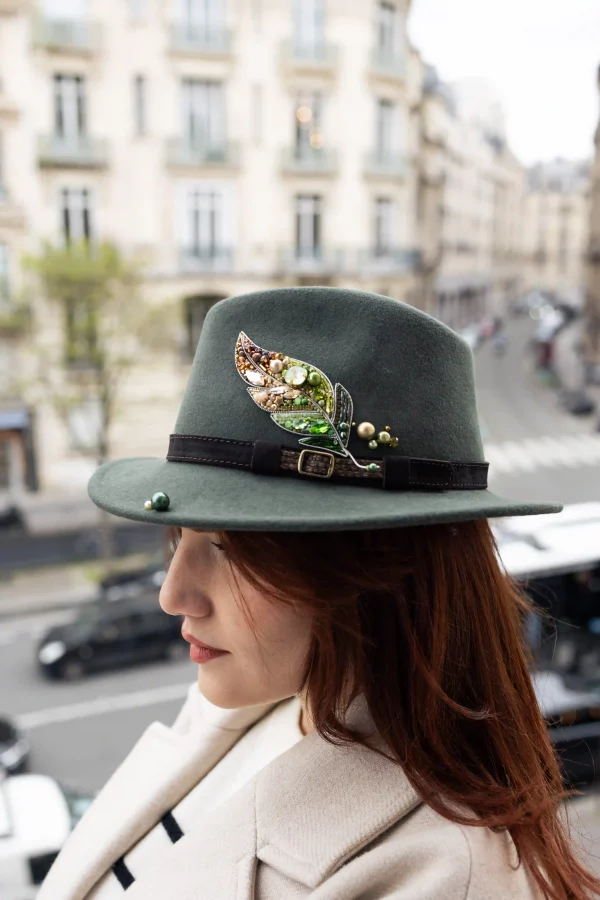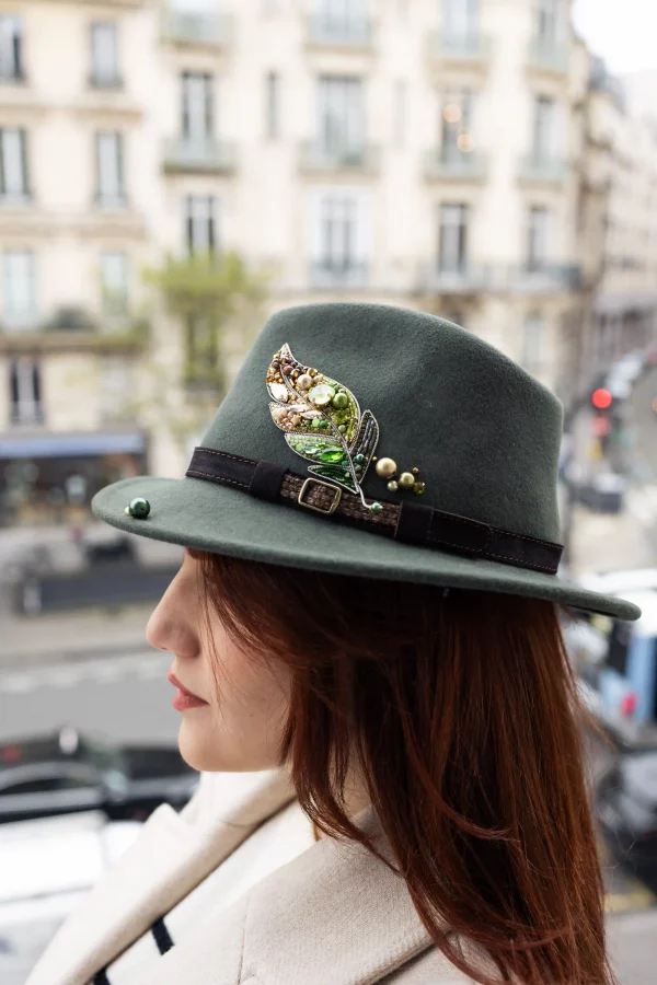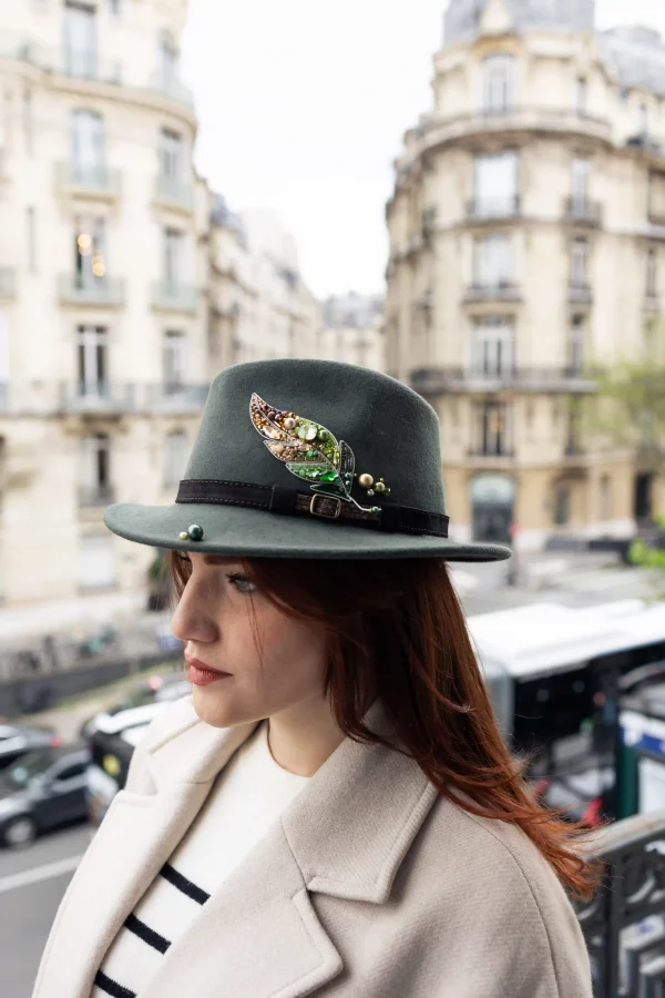 Fedora « Le Lys Royal » Grand Bord Gris Turquoise