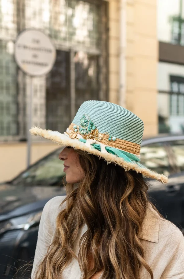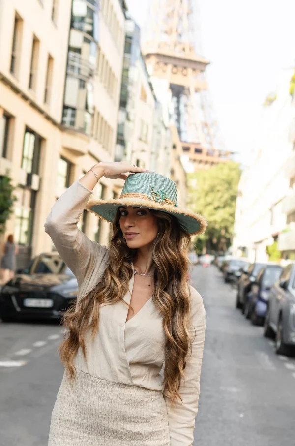 Fedora « Le Lys Royal » Grand Bord Gris Turquoise