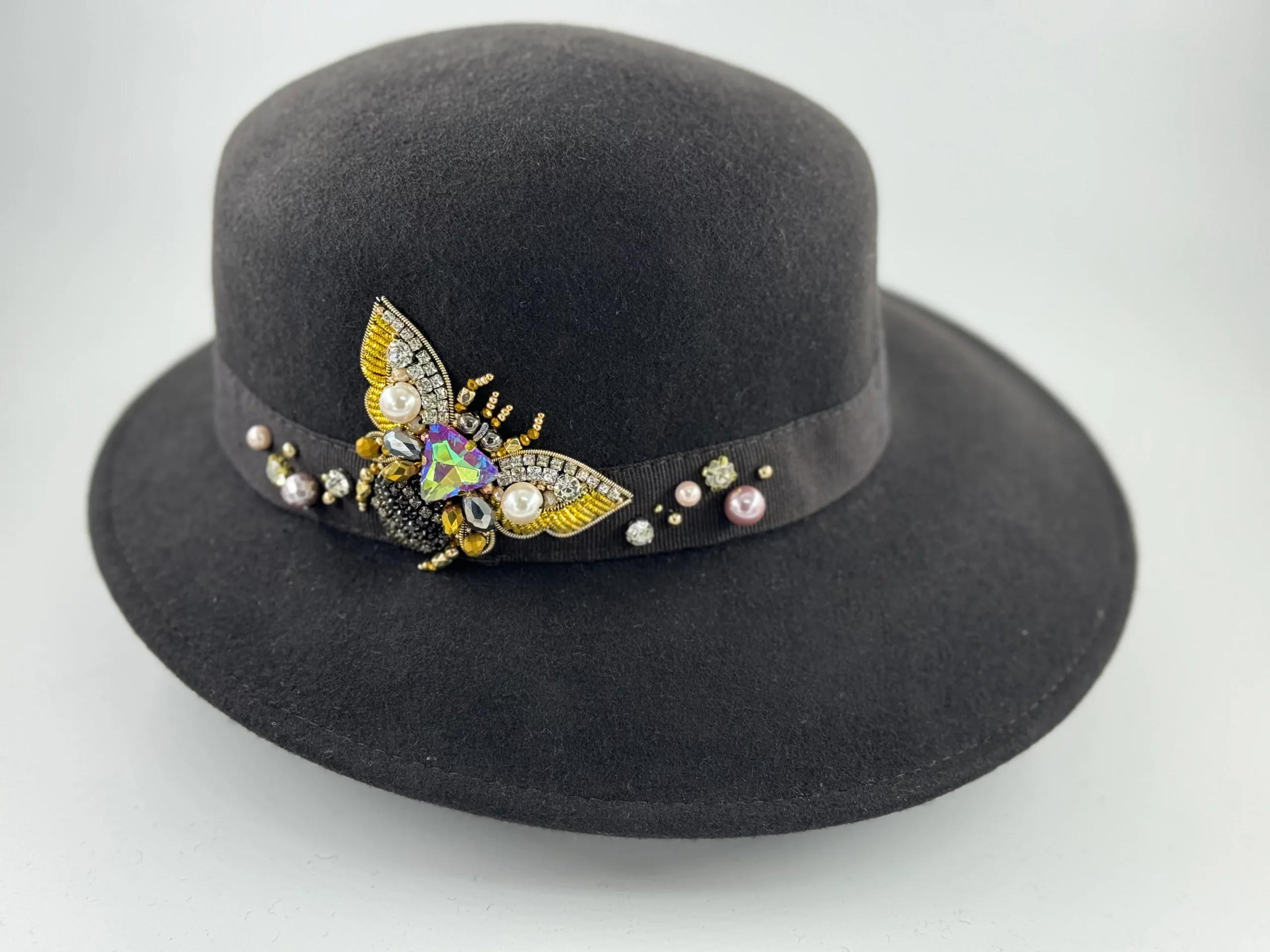 Fedora « Le Lys Royal » Grand Bord Gris Violine