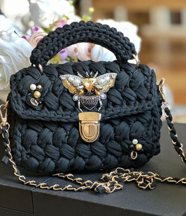 MiniBag « Signature BEE » Noir Tressé – Taille Medium